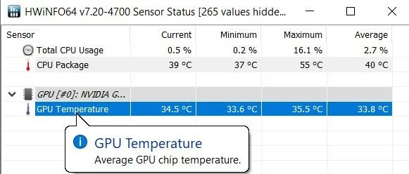 5. 他の要素の詳細が不要な場合、アプリは平均GPU温度のみを自動表示します。