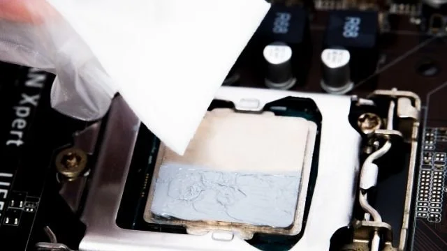 新しいサーマルペーストを塗布する前に、古いペーストはすべて除去する必要があります。これは新しいペーストが本来の機能を発揮し、CPU とヒートシンクの間で効果的に熱を伝えるようにするためです。既存のサーマルペーストの除去はそれほど難しい作業ではなく、頻繁に行う必要もありません。