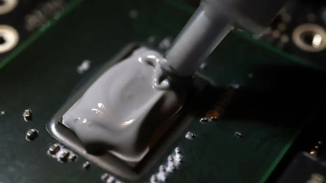 サーマルグルーが使われるのは、機器が発熱し、温度を調整する必要があり、さらにパーツの固定が機能に不可欠な場面です。接着性と伝導性の両方が重要なシナリオです。通常はサーマルペーストと接着剤が別々に必要になる場面ですが、サーマルグルーはその両方を両立できる中間的な選択肢になります。